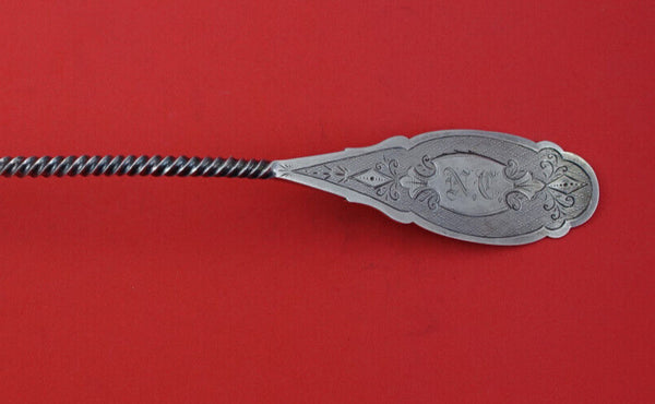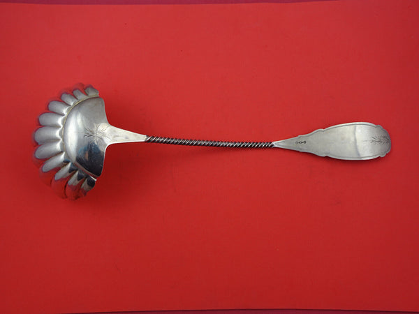 silver Soup Ladle by Hotchkiss Schreuder engine turned with shell bowl and twist handle, 13". It is monogrammed ("NC", as shown) and is in good vintage condition.