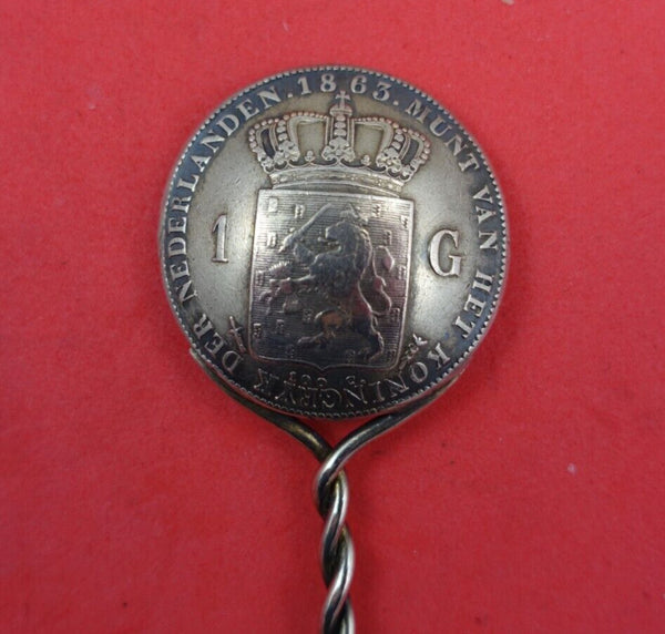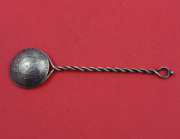 Dutch Coin Silver Demitasse Spoon Bowl with Twisted Handle Dated 1863 4 1/4"