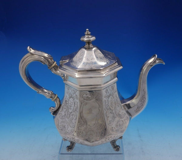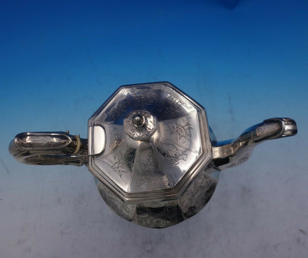 Gelston Treadwell Coin Silver Tea Pot Bright-Cut w/ Japanesque Motifs (#3929)
