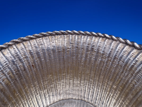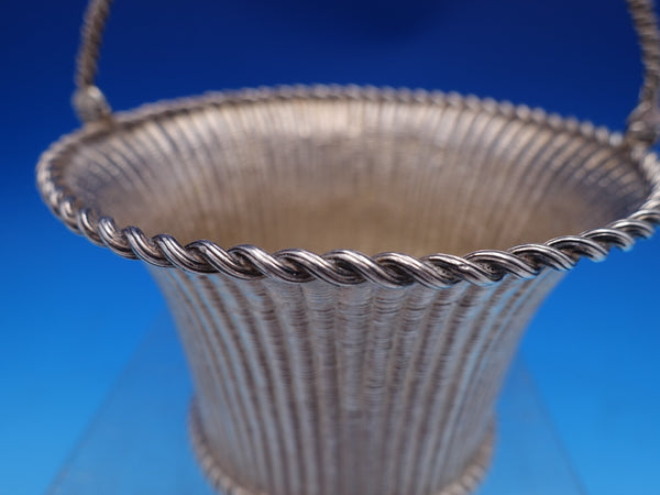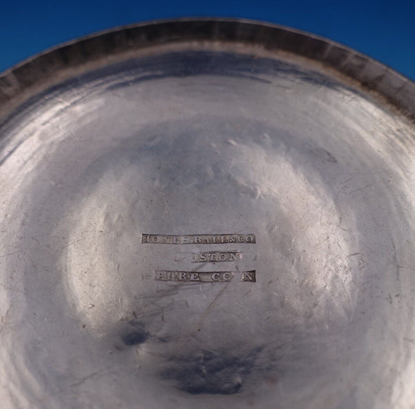 Beautiful Jones Ball and Poor pure coin silver basket with handle. This basket measures 3 1/8" tall (5 1/2" with handle) x 5" (width) and weighs 7.41 troy ounces. It is not monogrammed and is in good estate condition as shown. Terrific piece!