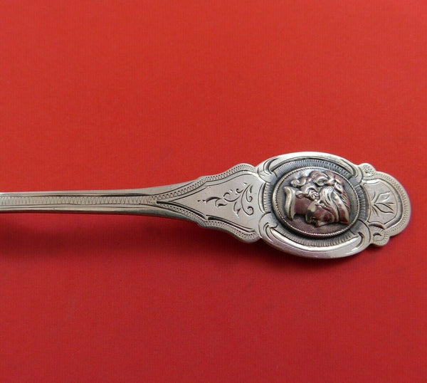 Medallion Coin Silver Pie Server Bright-Cut Engine Turned w/Applied Medallion 8"