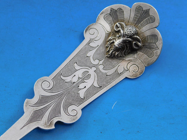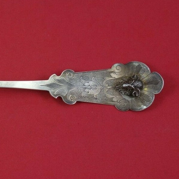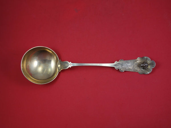 Fabulous 3-D figural Art silver coin silver Oyster Ladle gold washed, bright-cut detailing, 11 1/4" in the pattern Ram by Schohay and Ludwig. It is monogrammed on the reverse (as shown) and is in excellent condition. Museum quality.