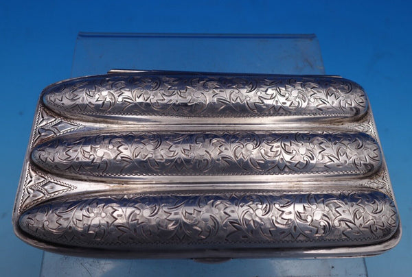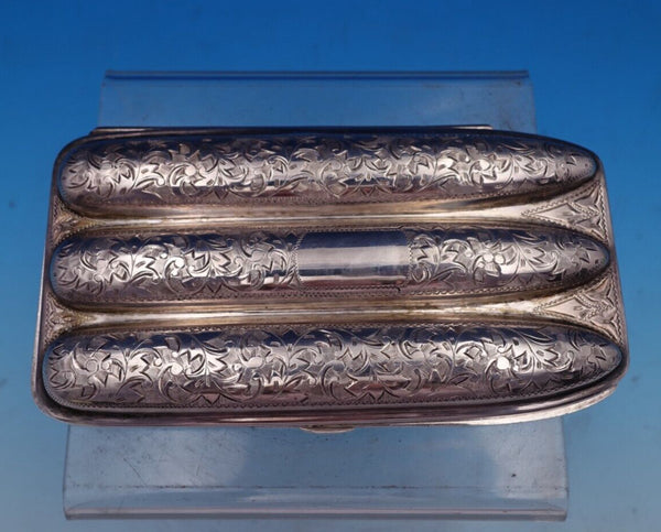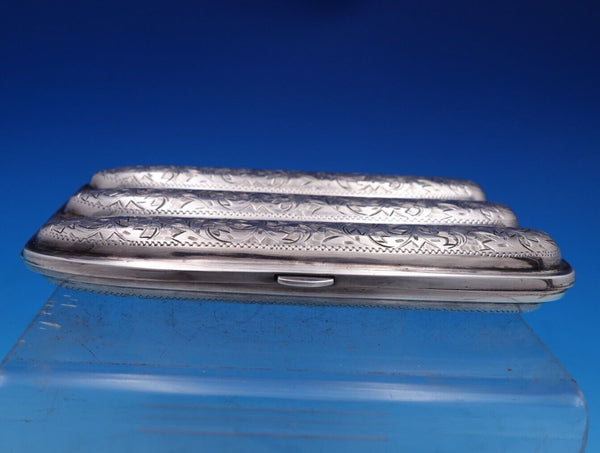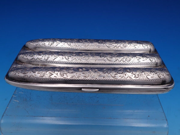 Japanese Sterling Silver Cigar Case Bright-Cut 5 5/8" x 3 1/4" x 7/8" (#8310)