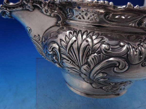 1 - Creamer (with gold washed interior): Measures 3" x 7" (with handles) and weighs 7.67 troy ounces.