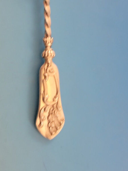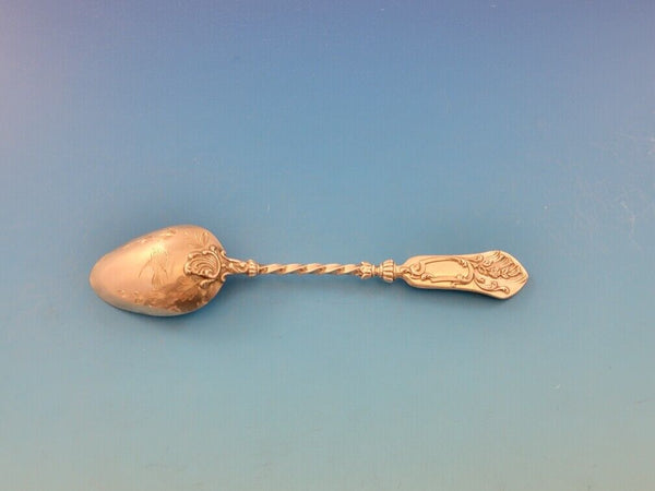 Sterling silver Coffee Spoon with Bright-Cut Back of Bowl with Birds and Leaves 5 3/8" by Emile Huignard. It is not monogrammed and is in excellent condition.