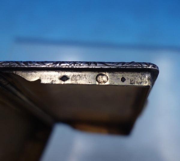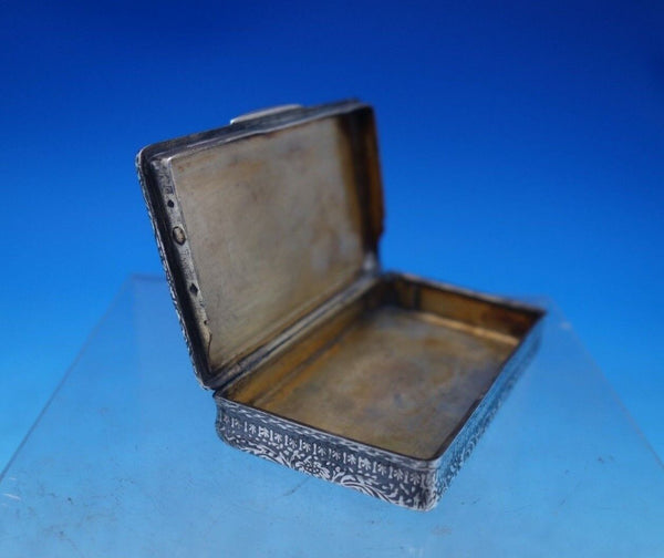Beautiful French .800 silver box with gold washed interior, circa 1819-1838 (maker unknown). This box features ornate chasing on all sides with snowflake medallion. It measures 5/8" x 3" x 1 7/8" and weighs 2.43 troy ounces. It is not monogrammed and is in good vintage condition as shown in the photos. Outstanding!