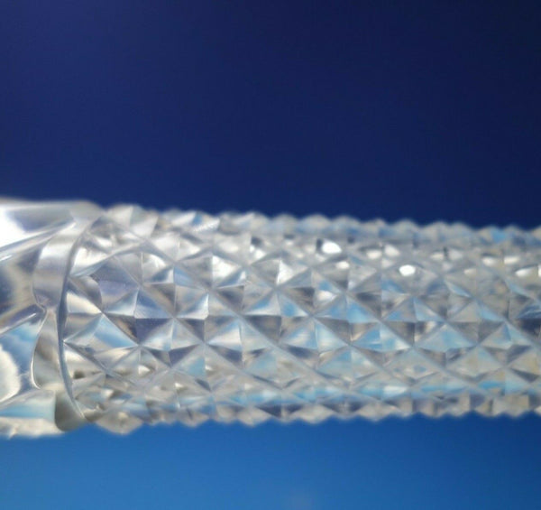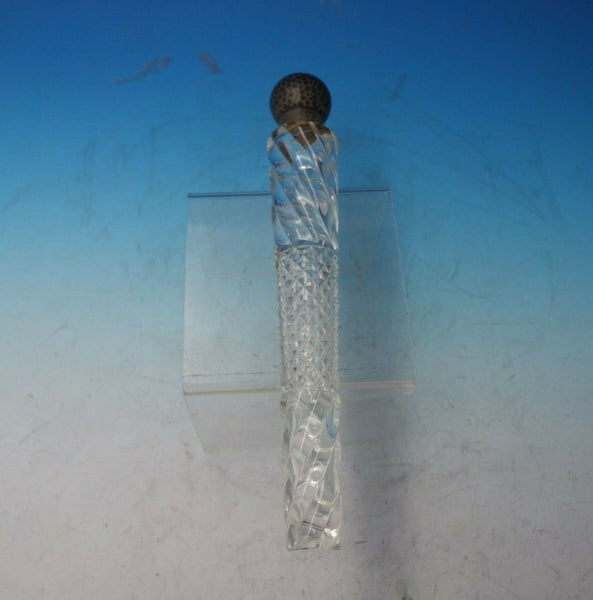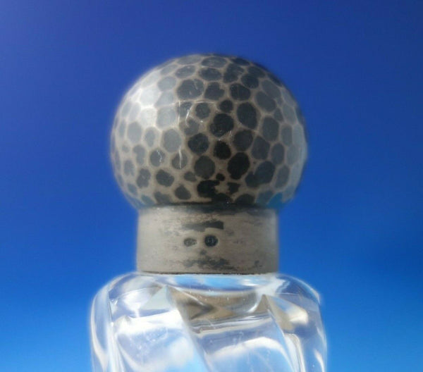 Lovely French cut crystal perfume flask with sterling silver hammered lid, circa 1900 (maker unknown). This piece measures 10 3/4". It is not monogrammed and is in good vintage condition. Beautiful!
