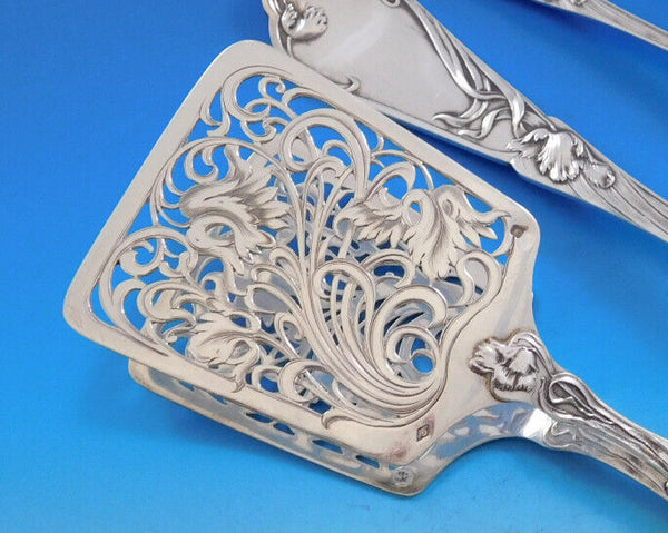 Tulipe - A pattern with exceptional refinement, produced by Charles Boulenger Cie. This Art Nouveau pattern with flowing floral and foliate decoration, was exhibited at the 1903 Beaux-Arts Exhibition in Paris. The high quality is also exhibited in the high silver content, 950 silver, which is higher than standard 925 sterling silver. The piercing and design of the serving areas on many of the serving pieces is outstanding.