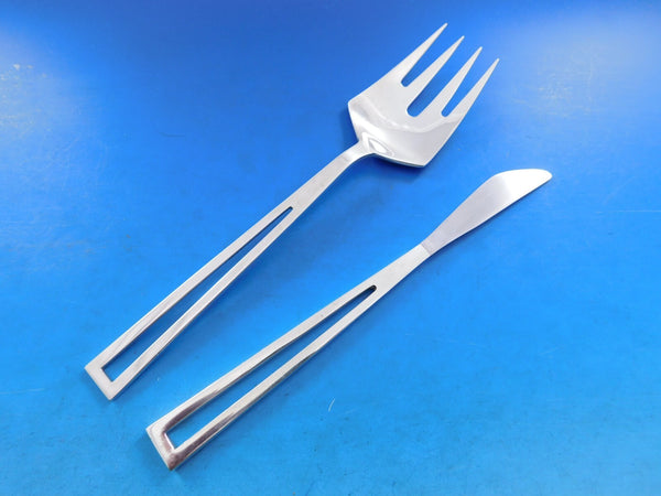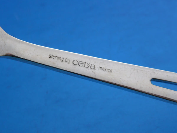 Celsa had a retail store on 57th Street in New York City in the 1950's. The pattern has a fantastic moderne geometric design with cut-out handles. Rare unique Mid-Century Modern circa 1955 Avanti by Celsa, of Mexico, sterling silver flatware set, 76 pieces.