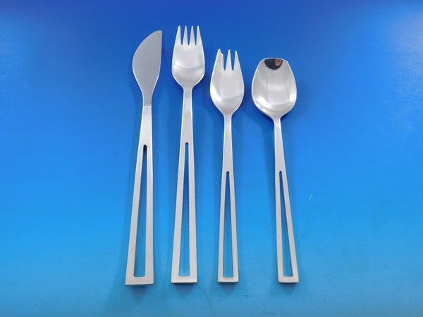 Rare unique Mid-Century Modern circa 1955 "Avanti" by Celsa, of Mexico, sterling silver Flatware set, 32 pieces. Celsa had a retail store on 57th Street in New York City in the 1950's. The pattern has a fantastic moderne geometric design with cut-out handles.