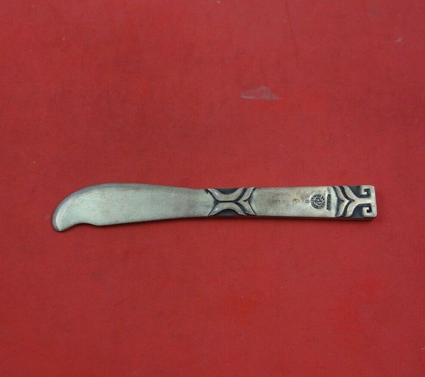 Sterling silver flat handle Butter Spreader 5" in the pattern Aztec by Pedro Castillo. It is not monogrammed and is in excellent condition.