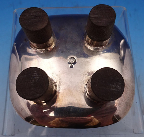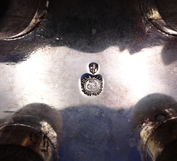 Beautiful Sanborns Mexican sterling silver dessert stand with wood feet. This piece measures 1 1/2" tall x 3 1/2" in diameter and weighs 3.1 troy ounces. It is not monogrammed and is in good estate condition as shown in the photos. Wonderful!
