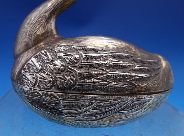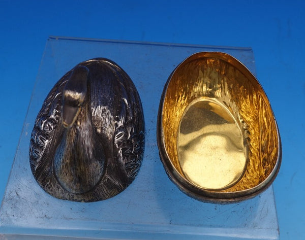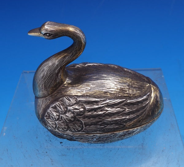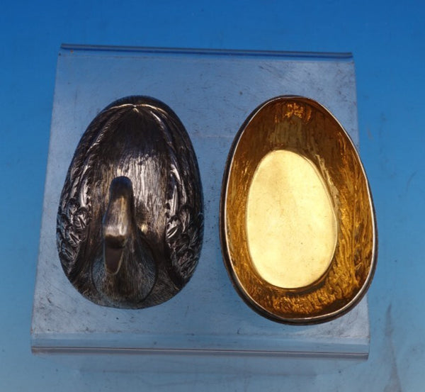 Remarkable Tane Mexican sterling silver swan shape covered candy dish with a beautiful gold washed interior. This dish measures 3 1/2" tall x 3 1/4" and weighs 4.5 troy ounces. It is not monogrammed and is in good estate condition as shown in the photos. Spectacular!