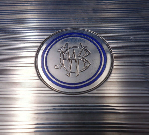 Marvelous Austrian .750 silver card case with engine turned cover with blue and white enamel. The piece measures 4" x 3 1/8" and weighs 4.66 troy ounces. It has a monogram (see photos), and is in good vintage condition. Outstanding!