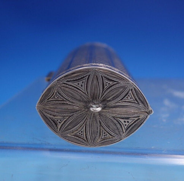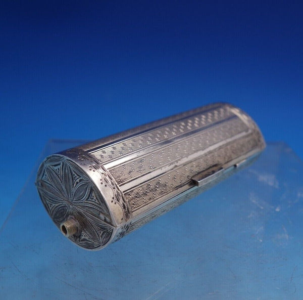 Wonderful Austrian .935 silver fine quality engraved compact with gold washed interior (maker unknown). This compact measures 3 3/8" in length, 1 3/4" in width, and 1 1/4" deep, and it weighs 3.52 troy ounces. It is not monogrammed and is being offered as-is due to missing screw cap. Terrific piece!