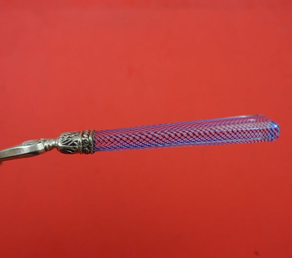 Beautiful Austrian sterling silver Dessert Set 18-Piece. The pieces in this set have clear glass and cobalt blue handles in a woven design. This set includes: