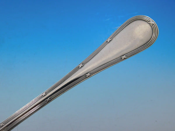 12 Dinner Size Knives, 10 3/8"12 Dinner Size Forks, 8 1/4"12 Luncheon Knives, 8 3/4"11 Luncheon/Dessert Forks, 7 1/4"12 Teaspoons, 5 3/4"12 Dessert Spoons, 7 1/4"12 Coffee Spoons, 4 5/8"12 Fruit Forks, hollow handle, 6 1/2"12 Fruit Knives, hollow handle, 7 1/4"12 Large Dinner Spoons, 8 1/4"12 Fish Knives, brite-cut, 8 1/4"12 Fish Forks, brite-cut, 7"12 Ice Cream Shovels, 5 1/4"12 Egg Spoons, 5 1/4"1 Serving Spoon, ovoid, 8 1/4"1 Salad Serving Set w/wood, 10 1/2" (slight damage to wood)1 Vegetable Serving Spoon, large, 10 1/4"1 Fish Serving Set, 2-pc, brite-cut, 11 1/2" 8 3/8"1 Soup Ladle, 12"1 Sugar Tong, 4 1/2" Includes bonus brand new storage chest - styles vary.