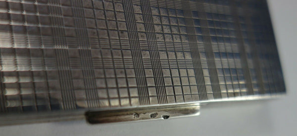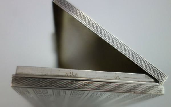 Beautiful Czechoslovakia .900 silver card case with engine turned design on all sides. The piece measures 3" x 2" and weighs 2.21 troy ounces. It is not monogrammed and is in excellent condition. Marvelous!