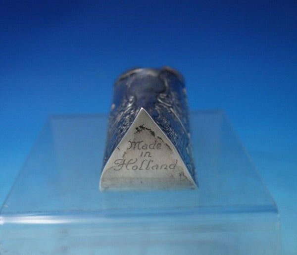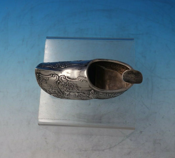Extraordinary Dutch .830 silver ashtray in the form of a wooden shoe made in Holland (maker unknown). This piece features pastoral scenes with cow and sheep. The ashtray measures 5" x 1 7/8" x 2" and weighs 3 troy ounces. It is not monogrammed and is in good vintage condition. Incredible!