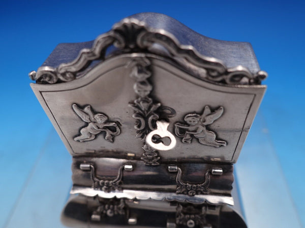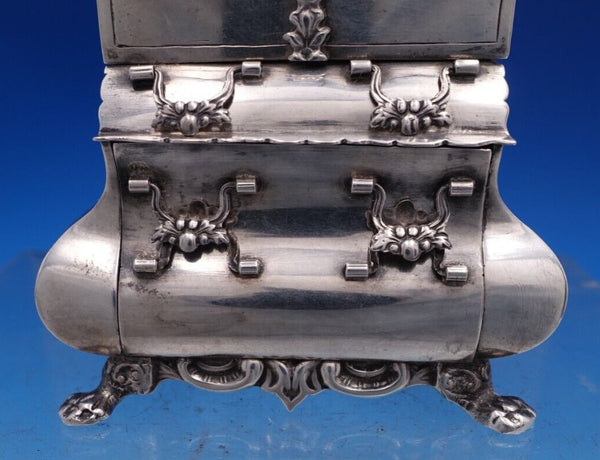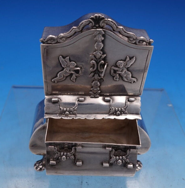 Charming Dutch .833 silver buffet for doll house made in 1910 with export key mark (maker unknown). This piece has a cupid motif and movable drawer. The buffet measures 3 1/4" tall x 2" and weighs 3.3 troy ounces. It is not monogrammed and is in good estate condition as shown in the photos. Terrific!