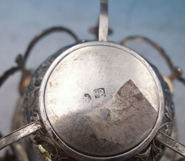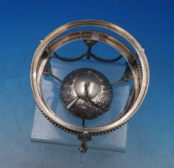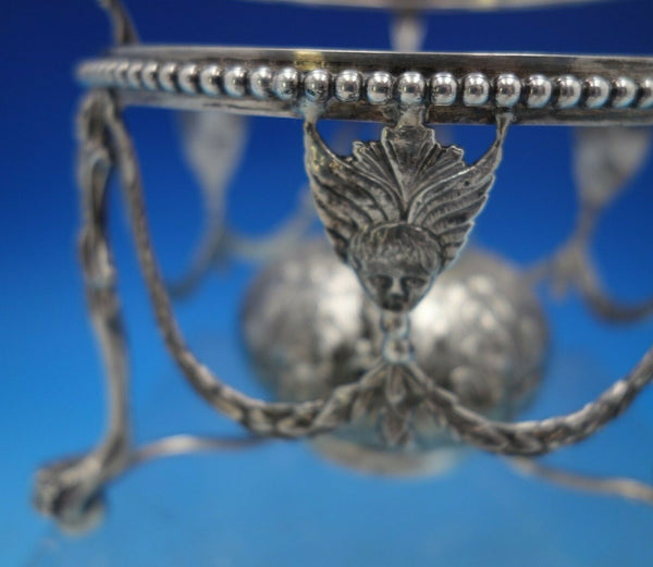 Dutch .833 Silver Warming Stand with Burner Cast Figural Faces Swags Birds #6534