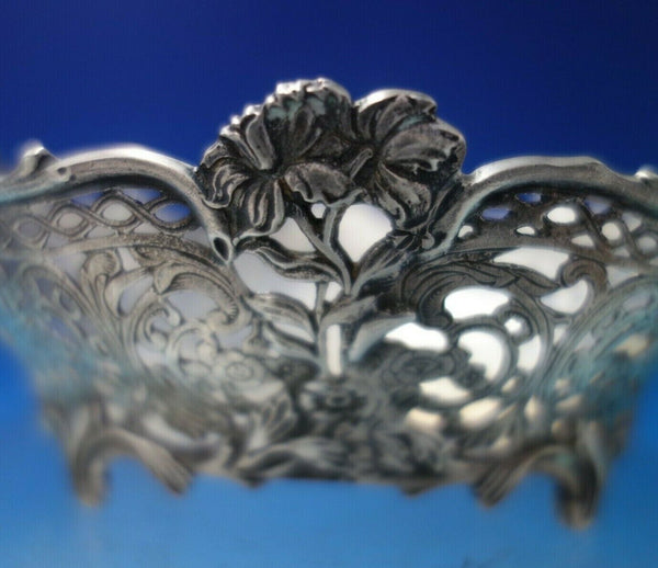 Dutch .835 Silver Candy Dish Footed w/ Handles Cast Pierced Flowers #200 (#6032)