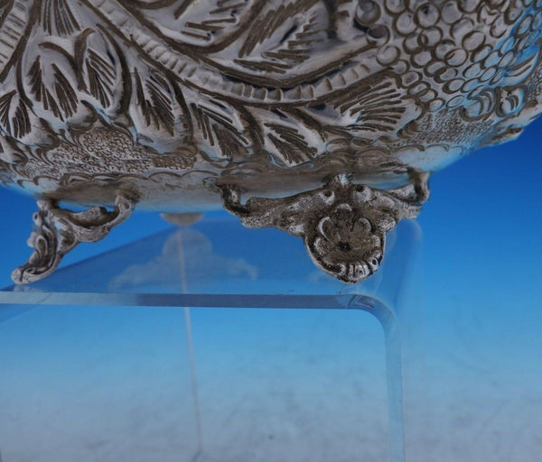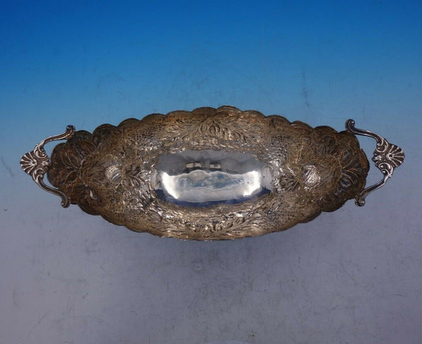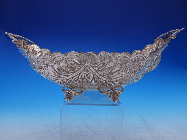 Exquisite Egyptian .900 silver bread tray or bowl with repoussed design with cast feet and handles. It is hallmarked for Alexandria post 1946 (maker unknown).