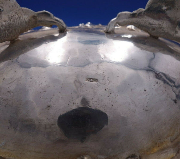 This piece measures 4 1/2" tall x 12 1/2" long and weighs 13.27 troy ounces. It is not monogrammed and is in excellent condition. Incredible!