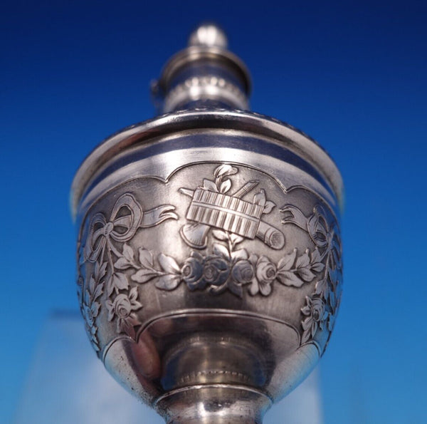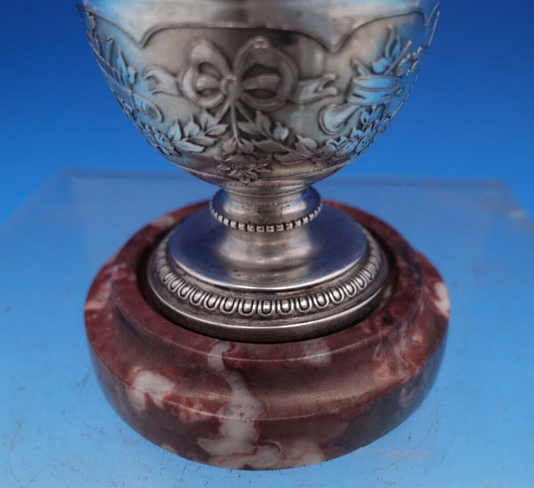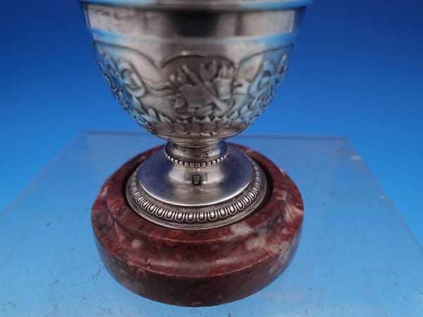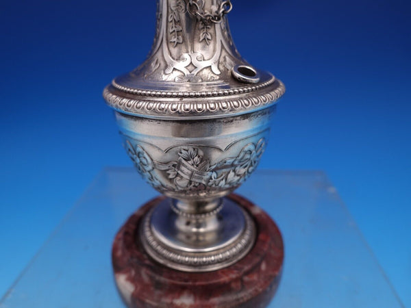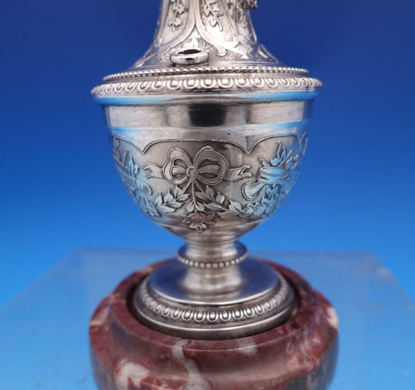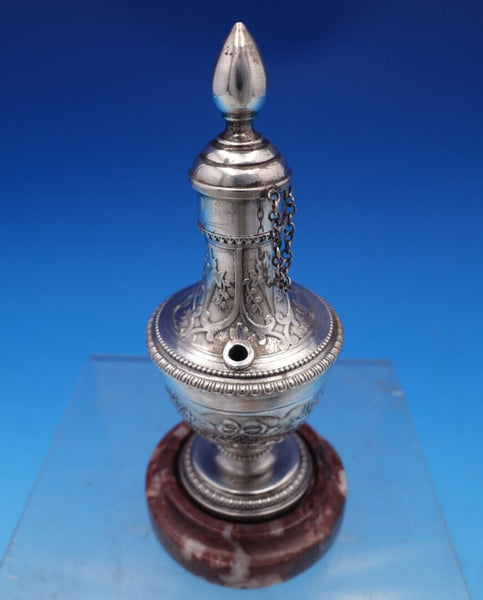 Exceptional French sterling silver cigar lighter with wonderful marble base (maker unknown), circa 1890. This piece measures 5 1/4" x 2 1/4" and weighs 5.2 troy ounces. It is not monogrammed and is in good estate condition as shown in the photos. Terrific piece!