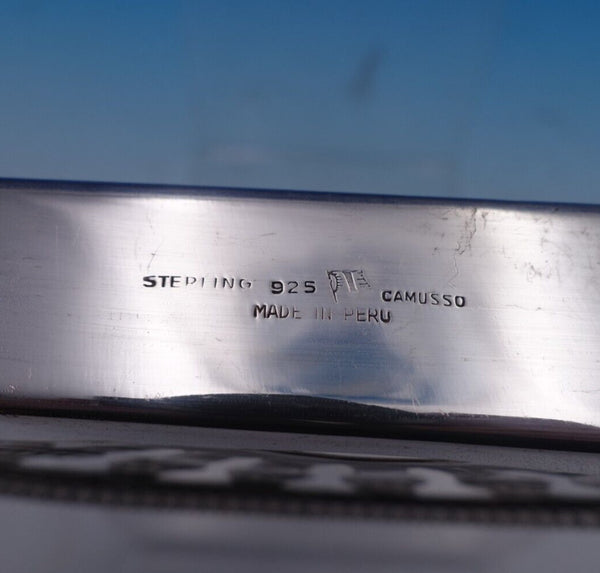 Stunning Gran Paris by Camusso Peruvian .925 silver letter holder for desk. This piece measures 3 1/2" x 6" and weighs 4.6 troy ounces. It is not monogrammed and is in good estate condition. Exceptional piece!