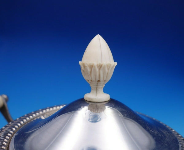 Exceptional Peruvian Gran Paris by Camusso 5-piece tea set with faux ivory handles and finials and griffin spouts. This set includes: