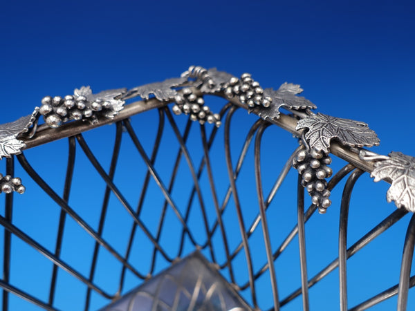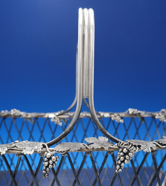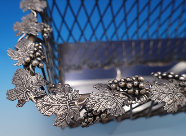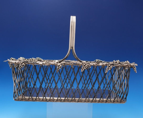 Wonderful Grape pattern Italian sterling silver wine caddy / grape basket sold by Gomps in San Francisco (maker unknown; marked 996 FI M2). This piece is very well made and measures 9 3/8" tall x 14" and weighs 61 troy ounces. It is not monogrammed and is in good estate condition as shown in the photos. Amazing!