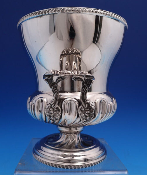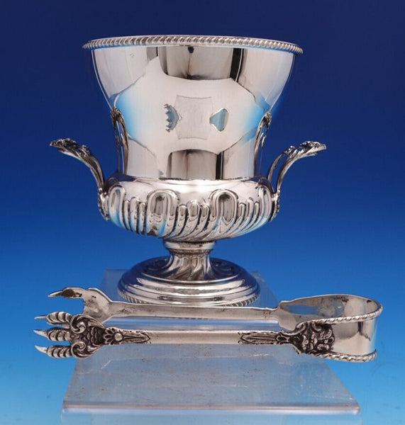 Beautiful Italian .800 silver ice bucket with tongs (maker unknown). This piece measures 6 3/4" tall x 6 1/2" and weighs 23 troy ounces. It is not monogrammed and is in good estate condition as shown in the photos. Wonderful!
