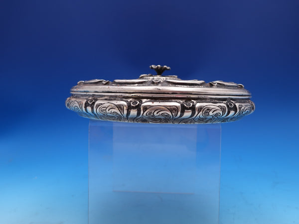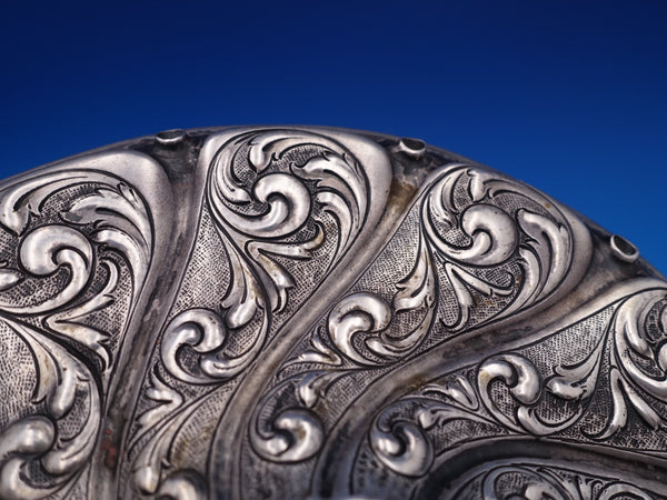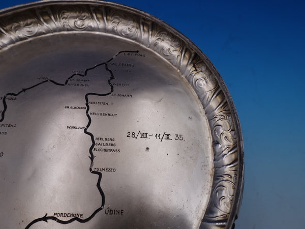 Ornate Italian .800 silver Pastry Dish with a trip to Italy depicted inside. It measures 8" in diameter x 2 1/2" tall to top of finial and weighs 18.8 ozt. It is in good vintage condition. Beautiful piece!