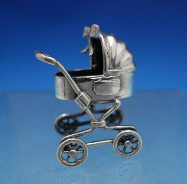Italian Sterling Silver Figurine Baby Pram / Stroller w/ Movable Wheels (#6753)