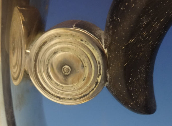 Simply beautiful 3-piece tea set made by Jezler of Switzerland. It is 800/1000 or 80% silver and is numbered #1614. It features ebony handles and finial with applied feet. The set dates from the 1960's. The set includes: