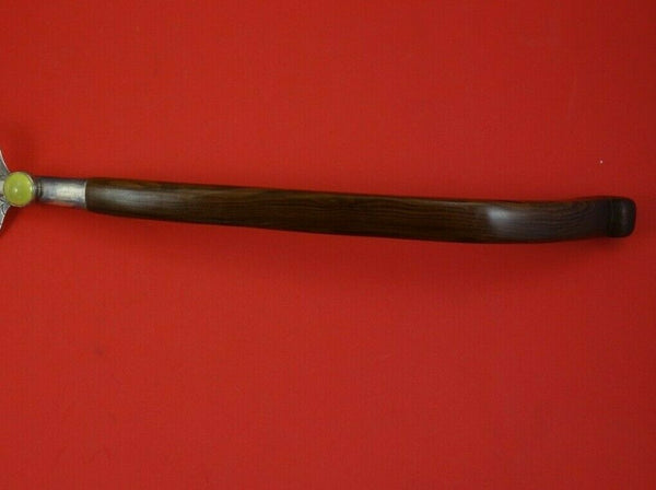 Peruvian .925 silver Paella Spoon 15 1/2" (maker unknown). This piece features a wood handle and a yellow stone. It is not monogrammed and is in good vintage condition.