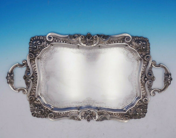1 - Tray (engraved with shells): Measures 26" x 14 1/4" x 1 5/8" and weighs 68.6 troy ounces.