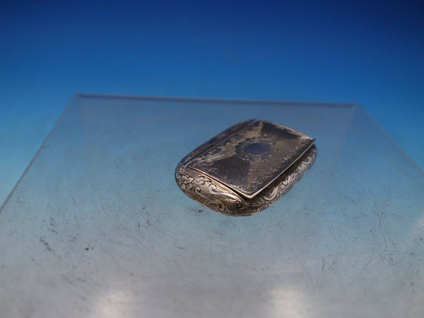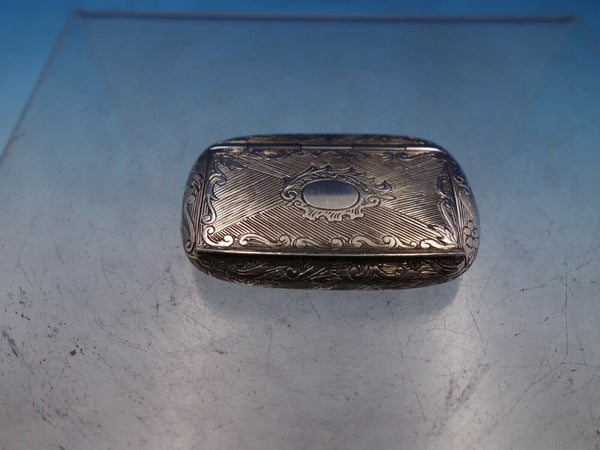 Lovely Portuguese sterling silver box with hinged lid and hand engraved design on all sides with gold washed interior (maker unknown). The box measures 1 7/8" x 1 1/4" and weighs 0.81 troy ounces. It is not monogrammed and is in good vintage condition. Fascinating!