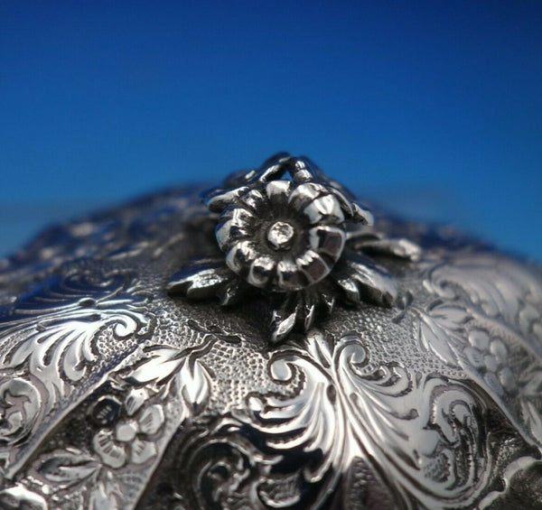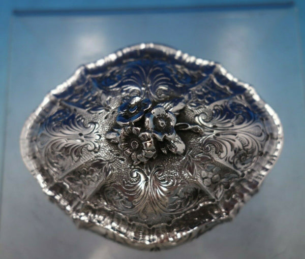 Lovely Romeo Miracoli Italian .800 silver chased jewelry box featuring 3-D flowers. This box measures 3 3/4" x 3" and weighs 3.95 troy ounces. It is not monogrammed and is in good vintage condition. Pretty!