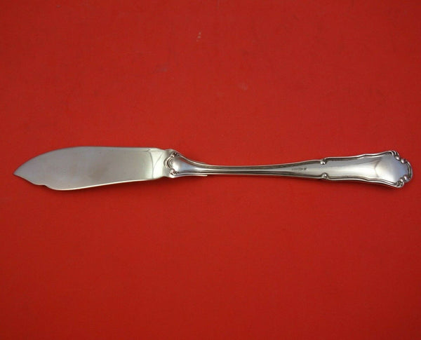 .800 silver flat handle Fish Knife All Sterling 8 1/4" in the pattern Savoy aka Barocchino by Calegaro. It is not monogrammed and is in excellent condition.