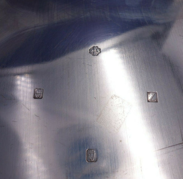 Superb Serpent by Royal Irish Silver Co .925 silver salver tray with serpent border. This piece is circa 1967 Dublin with British import marks "SAO" (Sheffield Assay Office). The tray measures 12 1/2" in diameter x 1 1/2" tall and weighs 36.0 troy ounces. It is not monogrammed and is in good vintage condition. Amazing piece!