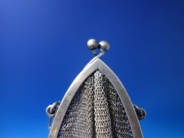 Beautiful sterling silver mesh purse, circa 1900 (unknown maker, unmarked). This purse measures 6" x 2" and weighs 2.2 troy ounces. It is not monogrammed and is in good vintage condition. Classy!