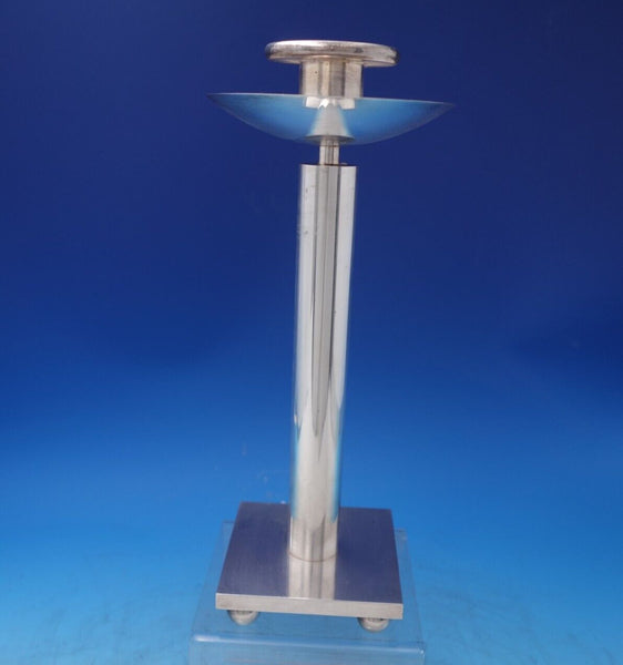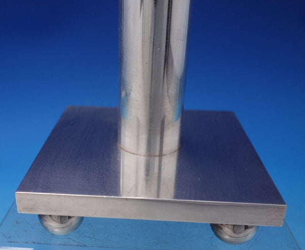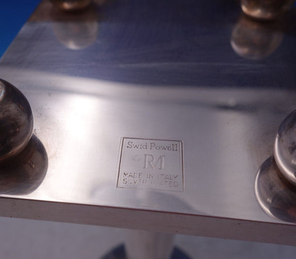 Wonderful Swid Powell Collection by Guido Galbiati silverplate candlestick pair with large square base and ball feet. This modernist pair was made in Italy and was retailed by Calvin Klein. The candlesticks measure 12" tall x 3 7/8" (base). They are not monogrammed and are in good estate condition as shown in the photos. Fantastic!