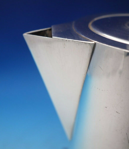 Outstanding Swid Powell Collection by Guido Galbiati sterling silver four-piece tea set. This modernist set was made in Milano, Italy, and was retailed by Calvin Klein. This set includes: