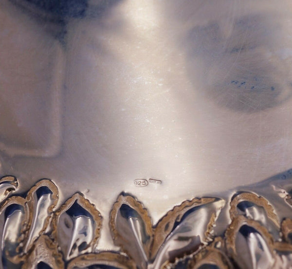 Spectacular Uno Argento sterling silver repousse-like fruit bowl marked #78. This bowl is new/never used and comes in original box with cloth bag. The bowl measures 9" x 1 1/2" and weighs 7.1 troy ounces. It is not monogrammed. Gorgeous piece!
