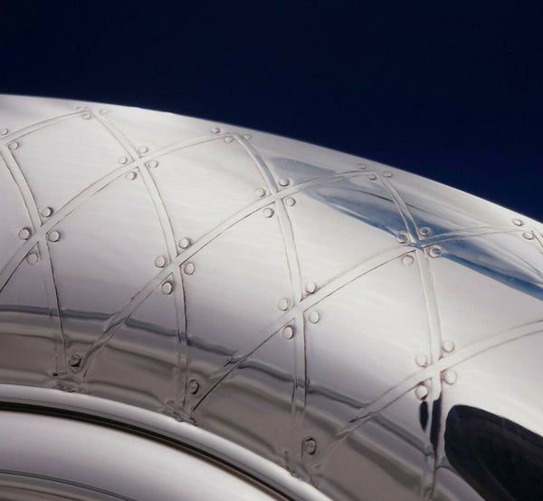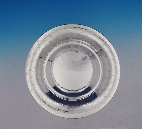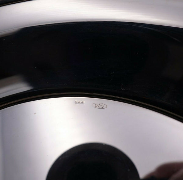 Spectacular Uno Argento sterling silver modern design shallow serving bowl marked #090C. This bowl is new/never used and comes in original box with cloth bag. The bowl measures 10 3/4" x 1 1/2" and weighs 9.1 troy ounces. It is not monogrammed. Fantastic piece!