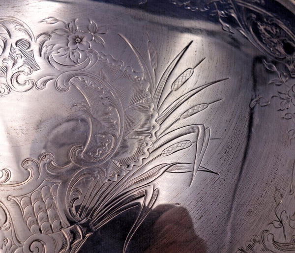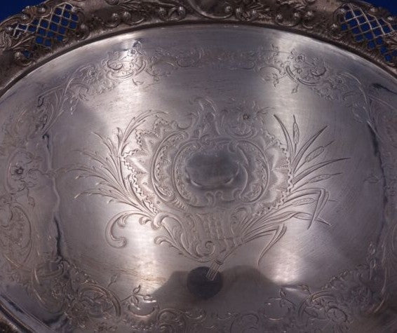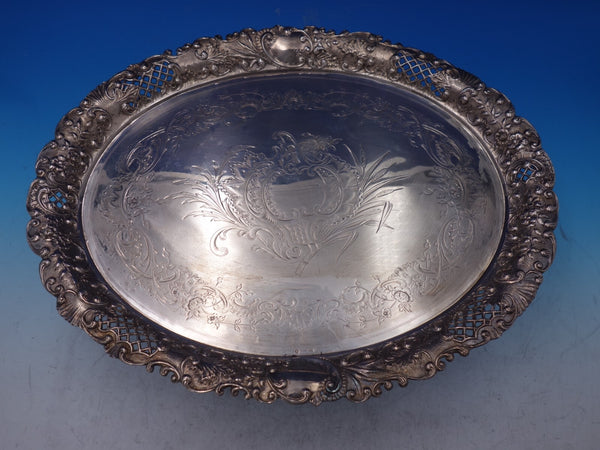 Gorgeous Vincenz Carl Dub Austrian .800 oval silver tray. This piece has a pierced border with lattice and flowers. It is engraved in the center with cattails and rococo scrollwork (see photos). The tray measures 16 1/2" x 13" and weighs 29.1 troy ounces. It is in good vintage condition as shown in the photos. Outstanding!