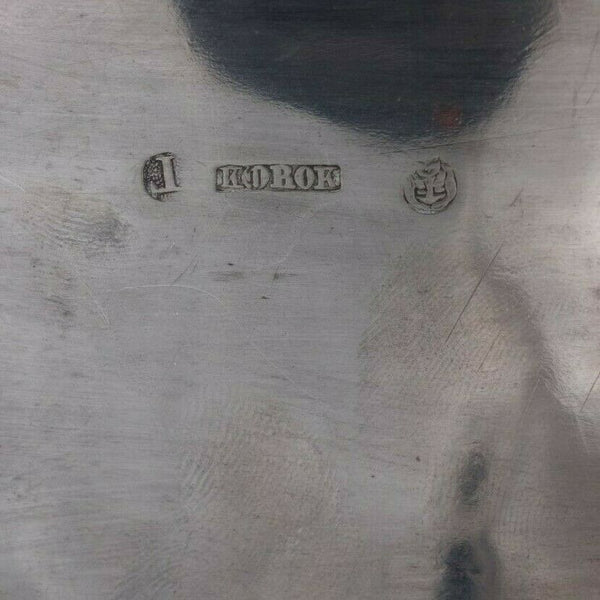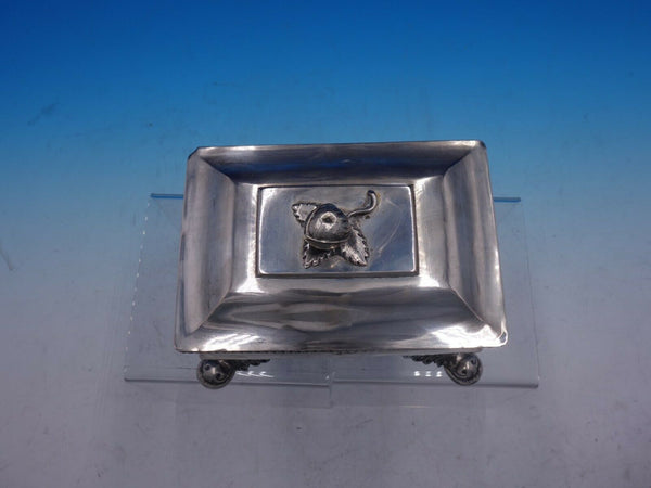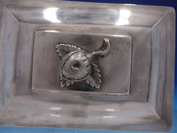 Polish 700 silver footed jewelry box with 3D walnut finial from 1835-58 Wroclaw, Poland. 1210th= 700 silver. It measures 4 1/2" x 6" and weighs 10.54 ozt. It is not monogrammed and is in relatively good vintage condition with signs of interior wear noted. Beautiful piece!