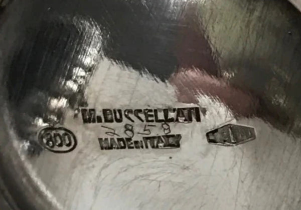 The surface of the silver has a special technique that only Buccellati mastered. It is called "Segrinato" whereby the artisan uses an etching tool to create a textured surface which contrasts against the shiny polished surfaces. This is a very labor-intensive process and creates a stunning texture effect. It also has the benefit in that it does not show fingerprints and requires very little maintenance.